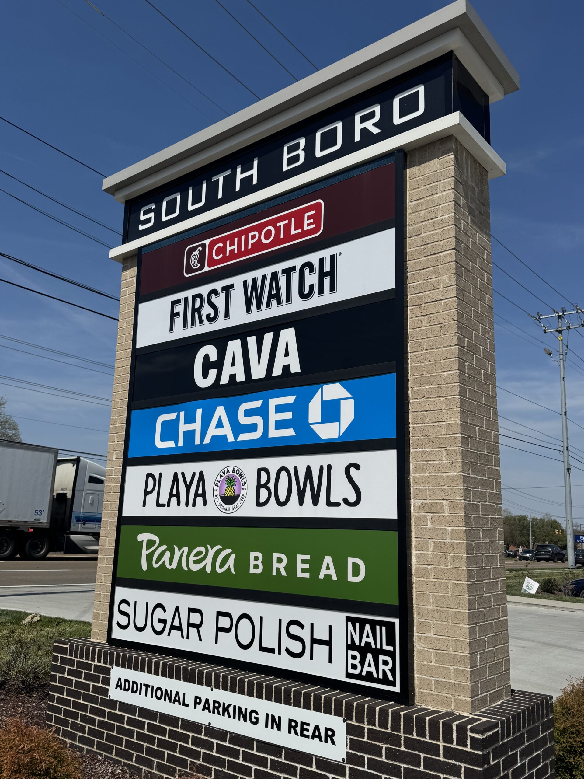 South Boro Shops is a retail center located at 2961 – 2977 South Church Street, Murfreesboro, TN. Tenants include Panera Bread, Playa Bowls, Sugar Polish Nail Salon, First Watch and others. The center is located just off I-24 in a rapidly growing area of Murfreesboro, Rutherford County, Tennessee.